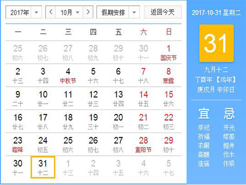农历九月十二,星期二,万圣节就在每年的
