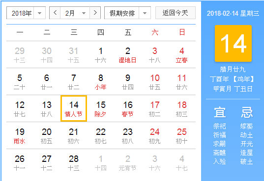 2018年情人节是哪一天